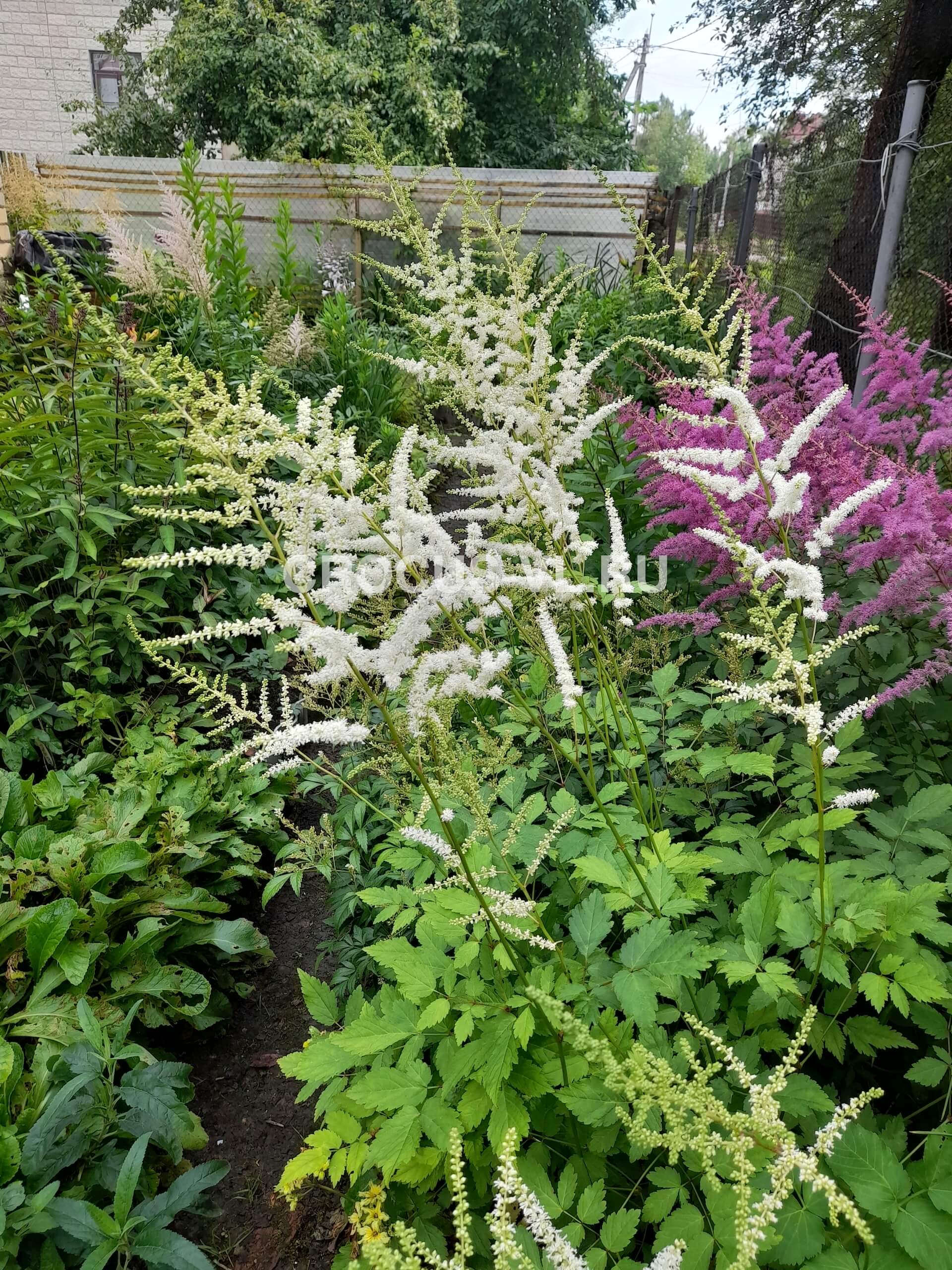 Астильба японская (Astilbe japonica) «Авалаш» («Лавина») – многолетнее корневищное, травянистое растение высотой до 50-60 см. Относится к семейству Камнеломковые. Цветки мелкие, многочисленные, кремово-белого цвета собраны в крупное метельчатое, слегка поникающее соцветие, размером до 15-20 см. Листва глянцевая, сложной формы, с мелкими зазубринами по краям, насыщенно-зелёная. Образует широкораскидистый куст с прочными прямостоячими побегами, диаметром до 50-60 см.