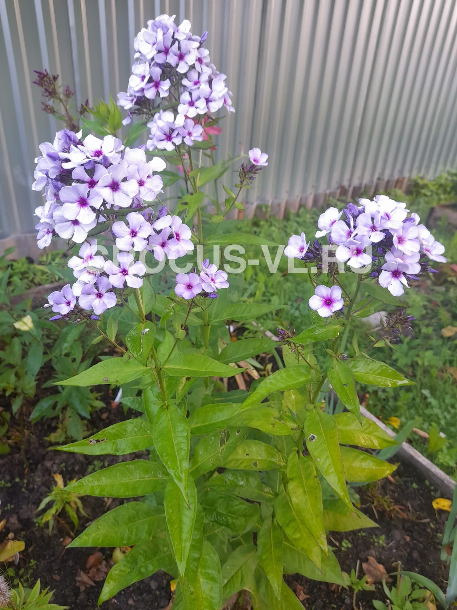 Флокс метельчатый (Phlox paniculata) «Charitovaya Kroshka» – многолетнее корневищное, травянистое растение, высотой до 60-70 см. Относится к семейству Синюховые (Polemoniaceae). Цветки колесовидные, до 2,5 см. в диаметре, сиренево-голубые с пурпурным глазком. Лепестки совсем маленькие, широко расставленные, изящной ромбовидной формы. Соцветие крупное, очень плотное, широко разветвленное, округло-конической формы, с нежным ароматом. Листья темно-зеленые, ланцетовидно-овальной формы со слегка зазубренным краем, расположены супротивно на крепких стеблях. Куст компактный, диаметром кроны до 50-60 см., с прямостоячими прочными цветоносами.