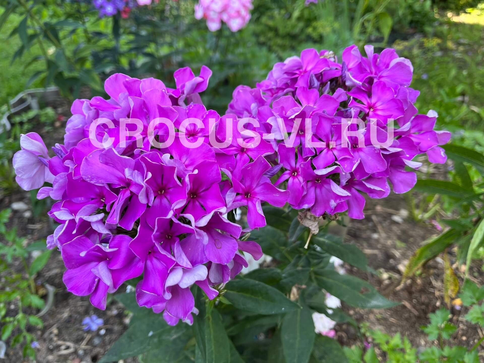 Флокс метельчатый (Phlox paniculata) «Decadence» – многолетнее корневищное, травянистое растение, высотой до 60-70 см. Относится к семейству Синюховые (Polemoniaceae). Цветки звездчатой формы, крупные, до 4 см. в диаметре, лиловые с небольшим просветлением в центре и тонкими пурпурными лучиками. Лепестки приподняты и скручены так, что видна их белая подкладка. Соцветие плотное, крупное, полушаровидной формы с приятным, сладковатым ароматом. Листья зеленые, ланцетовидной формы. Куст компактный, диаметром кроны до 40-50 см., с прямостоячими, прочными цветоносами.