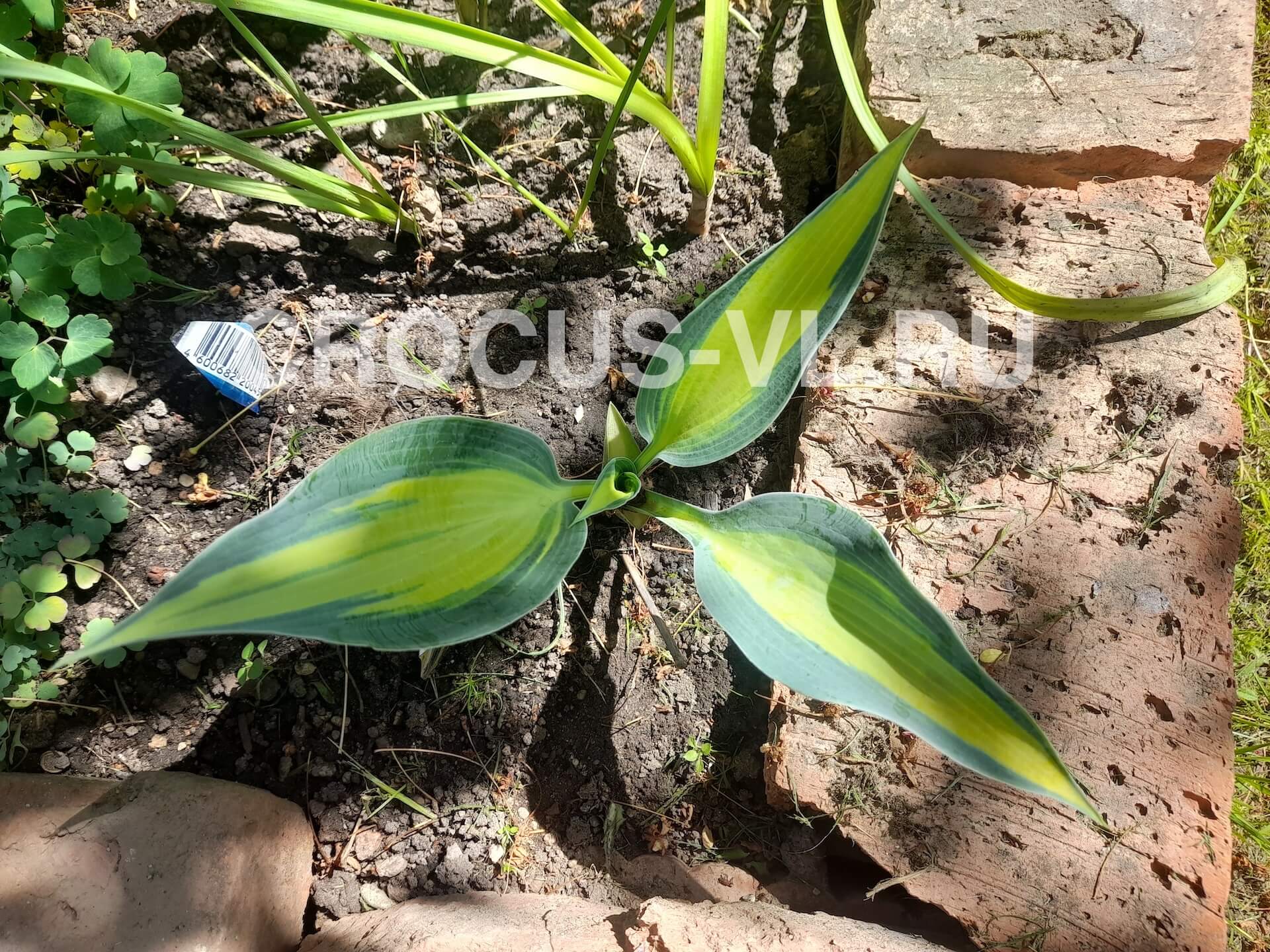 Хоста гибридная (Hosta hybride) «Кэтрин» («Катерина») – многолетнее корневищное, травянистое растение, высотой 30-40 см. Относится к семейству Спаржевые (Asparagaceae). Листья сердцевидно-вытянутые, глянцевые, очень плотные. Листовая пластинка сине-зеленая с лимонно-лаймовой полосой по центру, размером 15х10 см. Окраска и форма листьев в полной мере проявляются со второго-третьего года посадки. Цветки колокольчатые с нежным ароматом, лилового цвета, размером до 3 см., на концах высоких цветоносов. Куст компактный, среднего (M) размера, диаметром до 60-70 см.