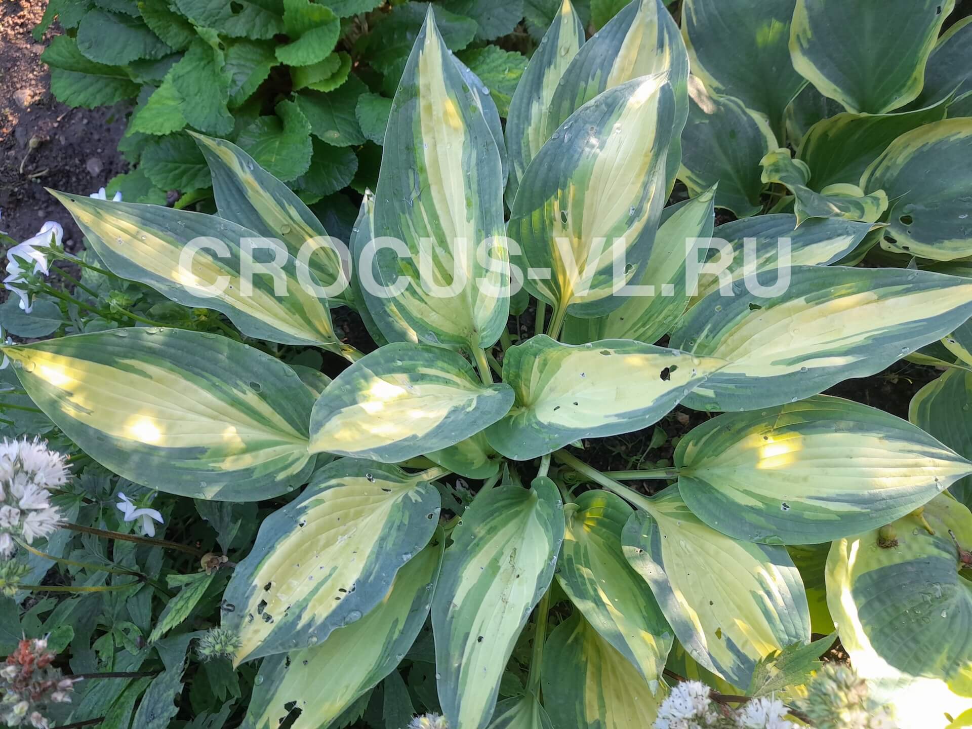 Хоста гибридная (Hosta hybride) «Литтл Анджел Вингс» («Маленькие Крылья Ангелов») – многолетнее корневищное, травянистое растение, высотой 20-25 см. Относится к семейству Спаржевые (Asparagaceae). Листья длинные, ланцетно-заостренной формы, весной кремово-желтые с сине-зеленой, широкой, нерегулярной каймой, к середине лета центр листа приобретает бело-кремовую окраску, который окружают оливковые всполохи. Окраска и форма листьев в полной мере проявляются со второго-третьего года посадки. Цветки колокольчатые, лавандового цвета, размером до 3 см., на концах высоких кремовых цветоносов. Куст компактный, от маленького до среднего (SM) размера, диаметром до 40-50 см.