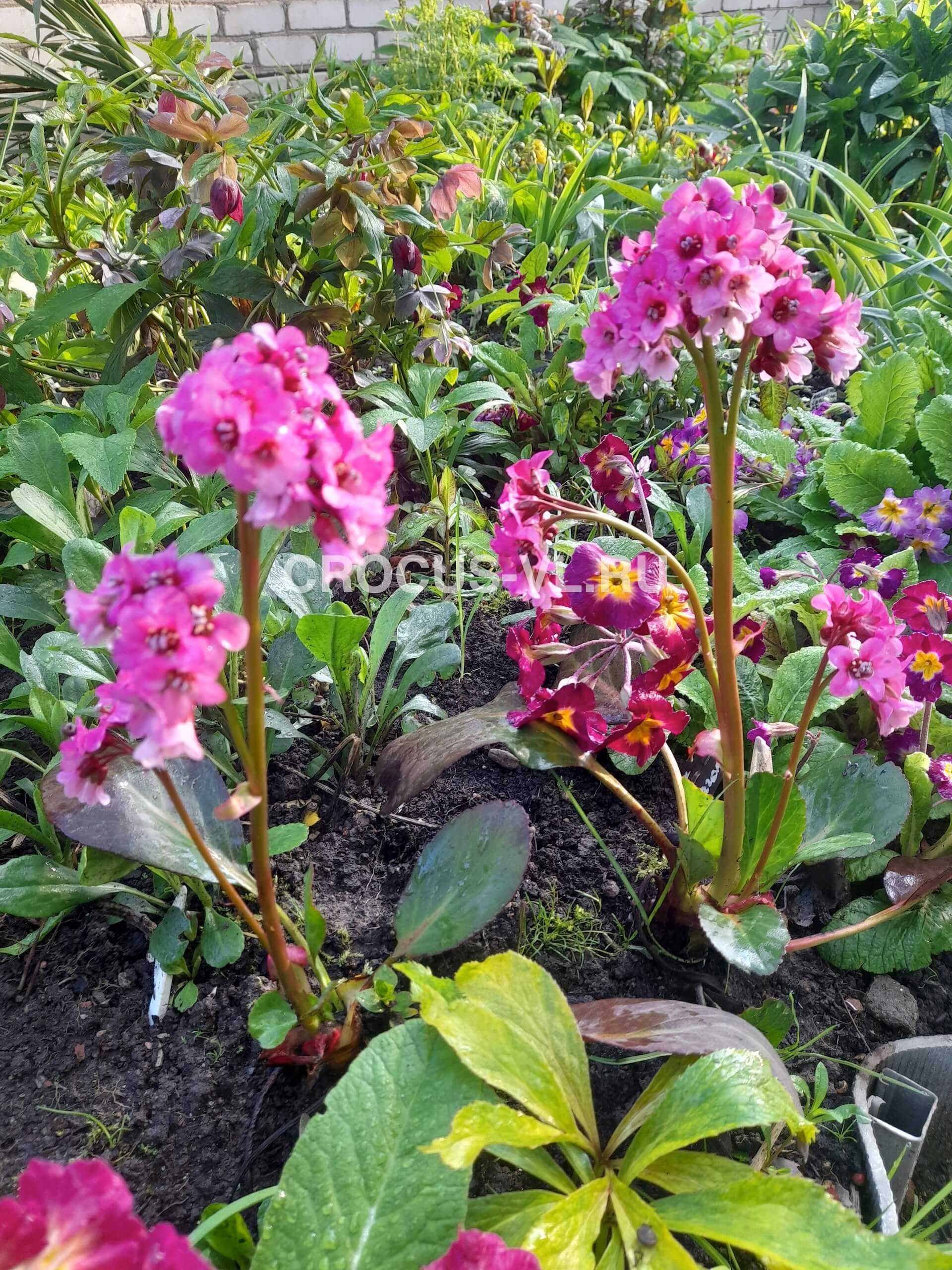 Бадан гибридный или бергения гибридная (Bergenia hybrida) «Пинк Драгонфлай» («Розовая Стрекоза») — многолетнее корневищное, вечнозеленое растение, высотой всего до 20-30 см. Относится к семейству Камнеломковые (Saxifragaceae). Цветки нежно-розовые, диаметром до 2,5 см., колокольчатые, с вишневым глазком, собраны в щитковидные соцветия, размером до 7 см., на концах прямостоячих цветоносов. Листья овально-яйцевидные, кожистые, блестящие, зеленого цвета, осенью становятся красновато-бронзовыми и сохраняют такой оттенок до ранней весны. Образует компактный кустик, диаметром до 25-30 см.